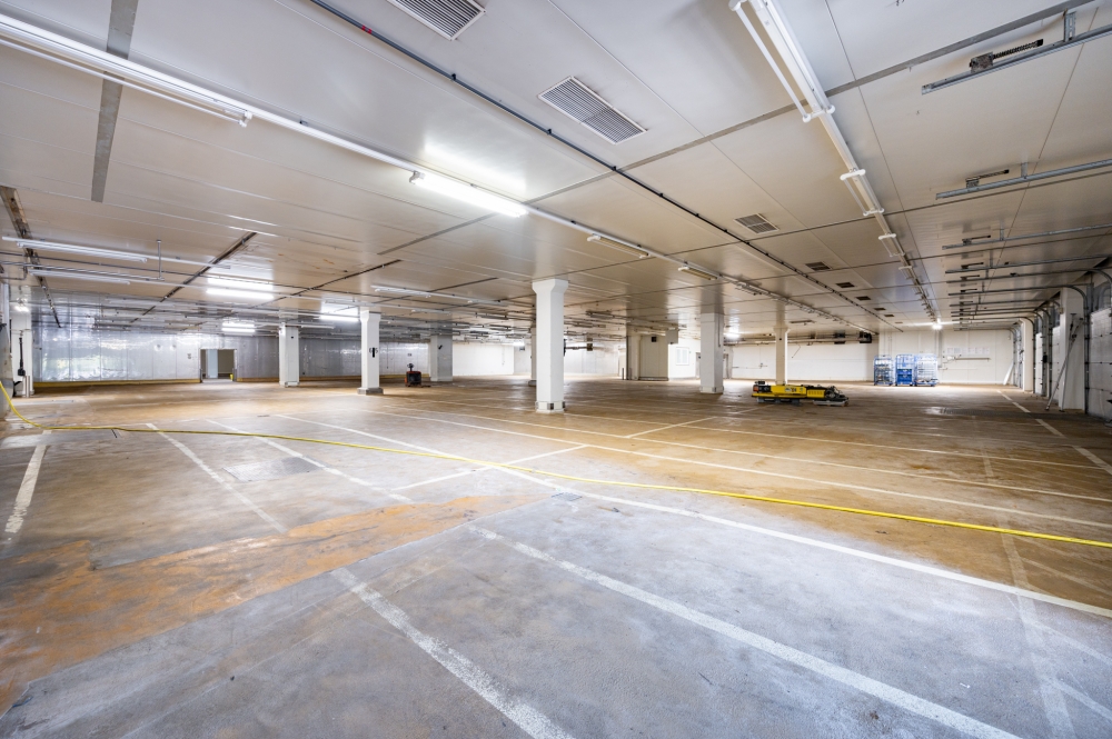 Die Hallenflächen bieten mit einer Traglast von bis zu 5.000 Kilogramm pro Quadratmeter im Erdgeschoss und 2.000 Kilogramm im Obergeschoss eine hohe Belastbarkeit. Deckenhöhen zwischen 3,5 und 7,6 Metern eröffnen zusätzliche Flexibilität bei der Nutzung.