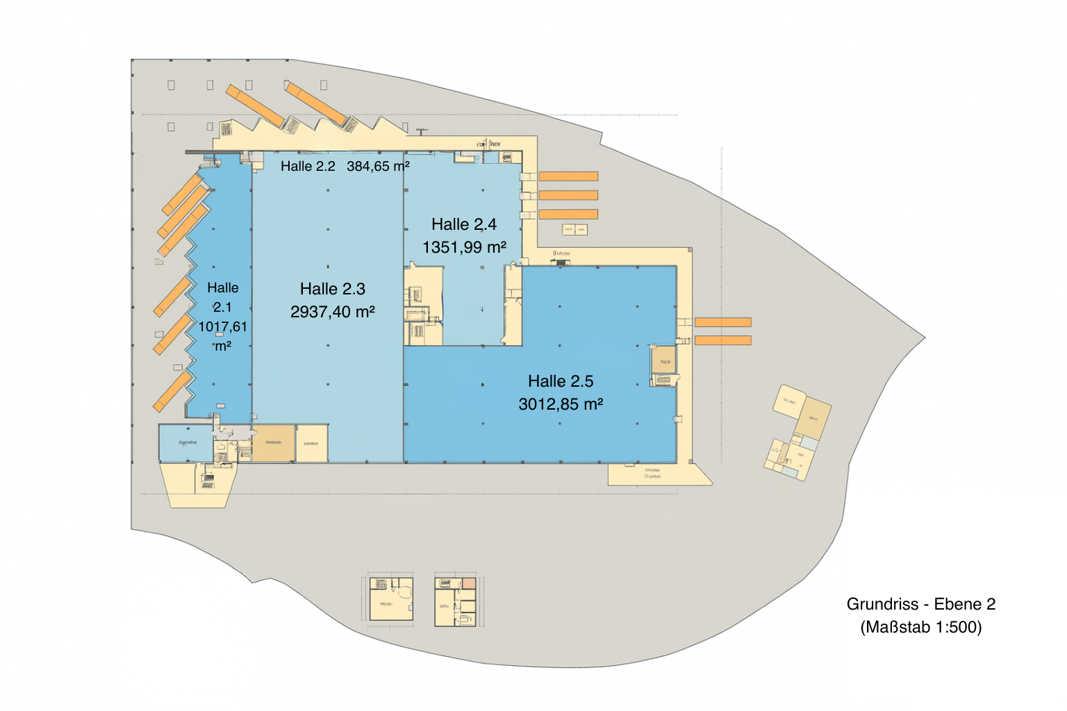 Die Hallenflächen stehen ab dem 01.01.2026 im Obergeschoss und ab dem 01.06.2026 im Erdgeschoss zur Verfügung.