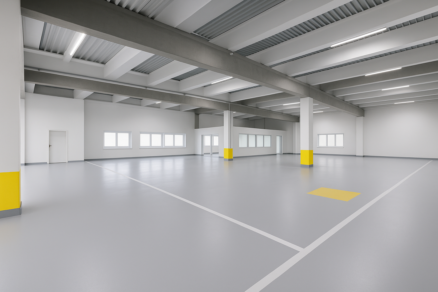 Die Hallen erhalten einen neuen Industrieboden, eine energieeffiziente LED-Beleuchtung sowie eine vollständig modernisierte Außenfassade. Damit entsteht ein Arbeitsumfeld, das nicht nur funktional, sondern auch repräsentativ ist.