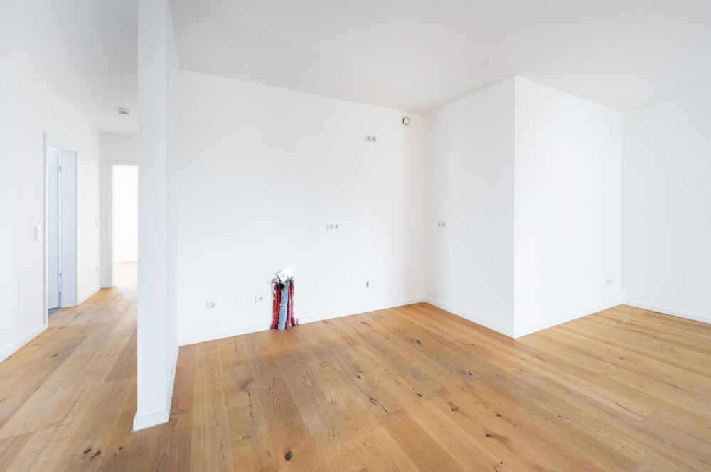 Beim Betre­ten der Woh­nung emp­fängt Sie ein ein­la­den­der Flur, von dem alle Räu­me bequem erreich­bar sind. Herz­stück der Woh­nung ist der offen gestal­te­te Wohn-Ess-Bereich mit direk­tem Zugang zum nach Süden aus­ge­rich­te­ten Bal­kon. Von hier aus haben Sie einen wun­der­schö­nen Aus­blick auf die bei­den zum Are­al gehö­ri­gen Tei­che und den Park. Durch boden­tie­fe, dreifach­verglaste Wär­me­schutz­fens­ter fällt reich­lich Tages­licht in den Raum, was eine war­me und wohn­li­che Atmo­sphä­re ver­leiht. Die Wohn­räu­me über­zeu­gen mit ca. 2,63 m hohen Decken, die das groß­zü­gi­ge Raum­ge­fühl zusätz­lich ver­stär­ken. Hoch­wer­ti­ges Eichen­par­kett in har­mo­ni­schem Farb­ton bil­det die Basis des Wohn­raums und har­mo­niert ide­al mit der ange­neh­men Fuß­bo­den­hei­zung, die in allen Räu­men für ein gleich­mä­ßi­ges Raum­kli­ma sorgt.