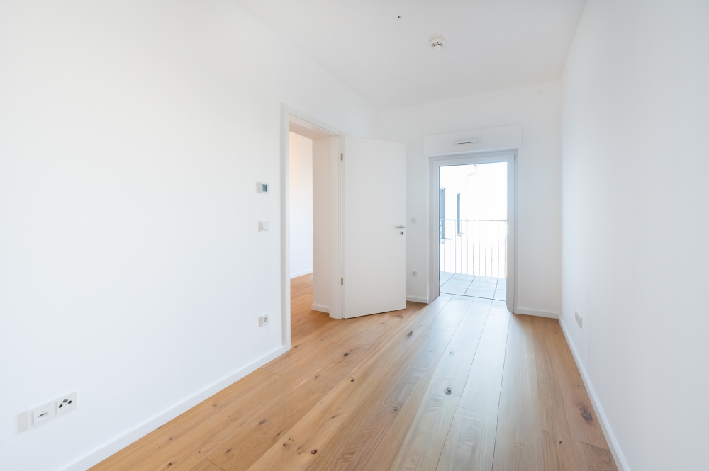 Die Wohnung verfügt über insgesamt drei Zimmer. Neben dem Hauptschlafzimmer steht ein weiteres Zimmer zur Verfügung, das sich flexibel als Kinderzimmer, Gästezimmer oder Büro nutzen lässt. Ergänzt wird das Raumangebot durch ein hochwertig ausgestattetes Badezimmer mit einer bodengleichen Dusche, Echtglasabtrennungen und hochwertigen Armaturen.