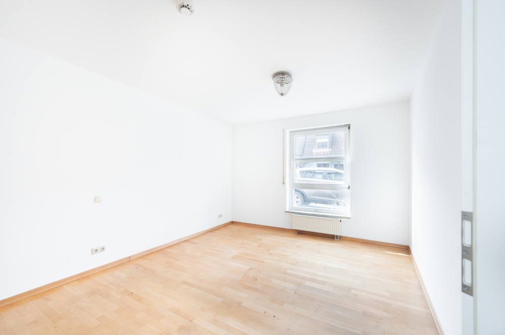 Über den Eingangsbereich gelangt man in den Flur, von dem aus alle Räume der Wohnung erreichbar sind. Der Wohnbereich bildet den Mittelpunkt der Wohnung und bietet ausreichend Platz für eine gemütliche Wohnlandschaft sowie einen Essbereich. Von hier aus besteht ein direkter Zugang zur Terrasse und in den Garten, wodurch ein offenes und wohnliches Raumgefühl entsteht.