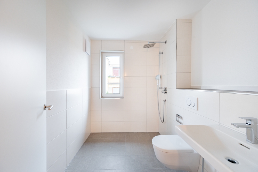 Ein wesent­li­cher Bei­trag zur Ener­gie­ef­fi­zi­enz und zum Wert­erhalt ist die dezen­tra­le Lüf­tungs­an­la­ge mit Wär­me­rück­ge­win­nung. Sie gewähr­leis­tet kon­ti­nu­ier­li­chen Luft­aus­tausch und trägt zu einem dau­er­haft gesun­den Raum­kli­ma bei. Innen­lie­gen­de Berei­che sind zusätz­lich feuch­te­ge­steu­ert ent­lüf­tet, wodurch die Bau­sub­stanz nach­hal­tig geschützt wird.